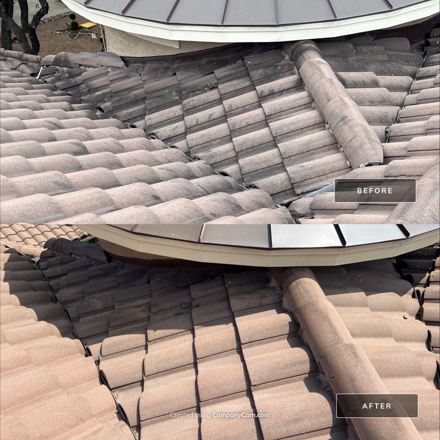 The finished result was a fully restored tile roof that is free of unsightly algae and mildew, with a visibly cleaner and brighter appearance. The integrity of the roofing materials was preserved while achieving a well-maintained look across the main roof, the detached building, and the pergola.