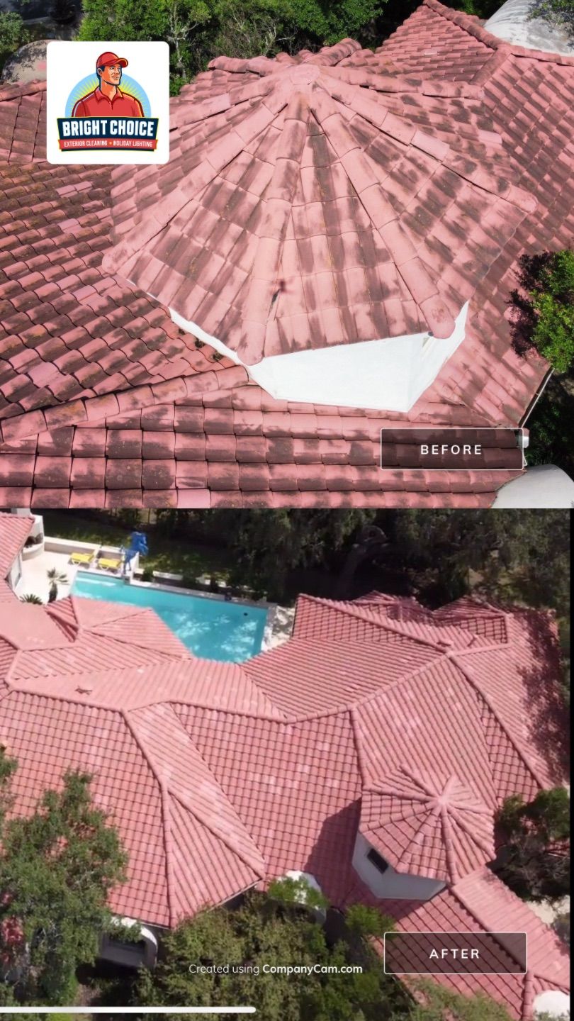 Bright Choice completed a comprehensive exterior cleaning project in San Antonio, TX, and we are sharing the details here at Bright Choice to show the results and methods used. The project included a tile roof soft wash, driveway pressure washing, a vinyl and painted house soft wash, and gutter cleaning. Every service was provided with the Stay Bright Guarantee, which includes a three year roof wash warranty. If algae or mildew returns within three years, the affected roof areas will be retreated at no additional cost.